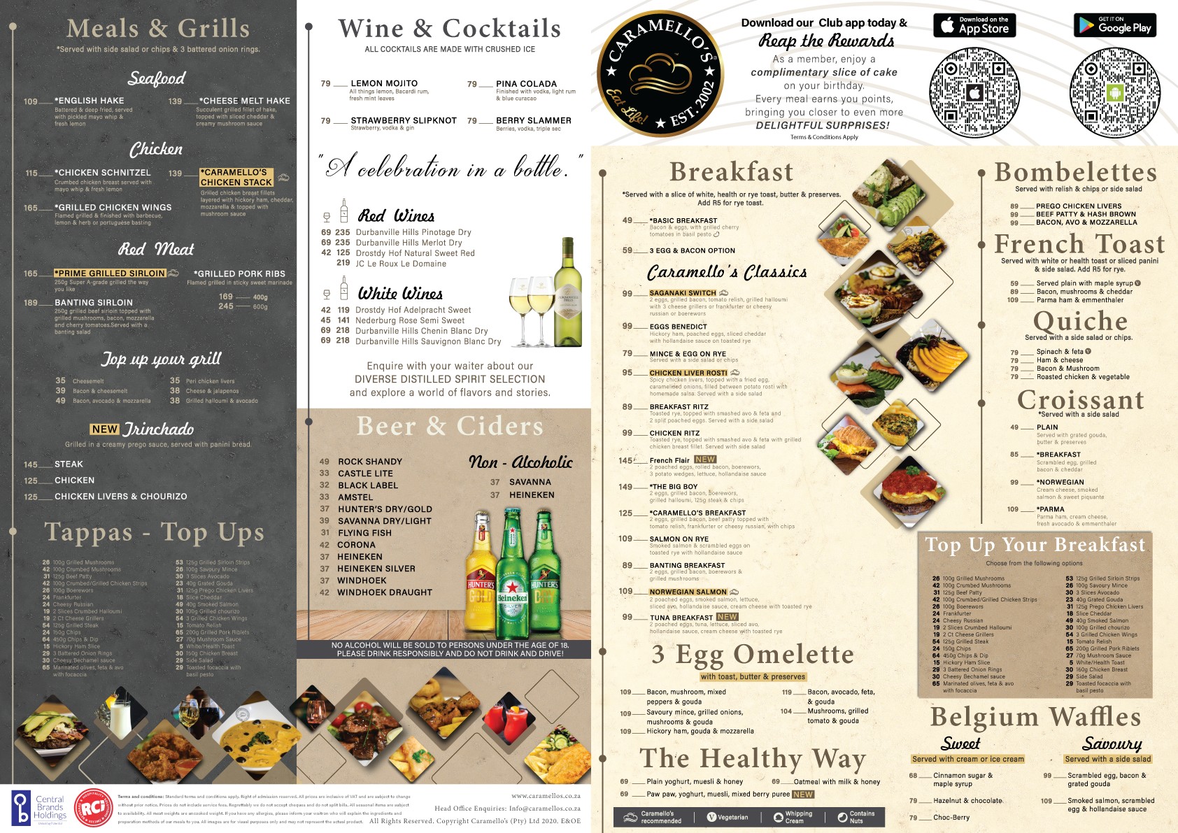 Caramellos is an established brand in Central South Africa and aims to cater for the sophisticated markets Restaurant, coffee shop and Cakery needs.